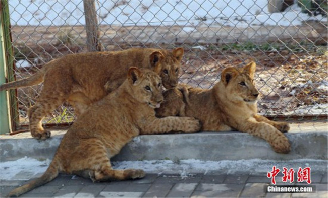 11月13日,西寧,小非洲獅曬太陽(yáng)。近日,青藏高原野生動(dòng)物園對(duì)外表示,該園繁育成活三只非洲獅。據(jù)了解,三只非洲獅寶分別出生于2018年5月9日和5月15日,均為雌性,其中一對(duì)為雙胞胎,目前三只“獅寶”已能自行捕食,體重均達(dá)到20公斤左右。此次是該物種在青藏高原誕生并育活的最好“成績(jī)”,就目前觀察情況來看,此物種已適應(yīng)青藏高原氣候。中新社記者 馬銘言 攝