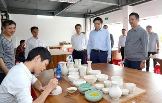 11月15日,市委書記、市人大常委會主任黃海昆深入北流市陶瓷小鎮(zhèn)調(diào)研。(記者 陳東 攝)