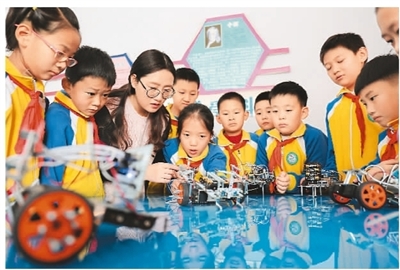 河北省承德市營子區(qū)濱河路小學將機器人編程課引入學校,安排專業(yè)教師指導學生進行機器人編程、機器人設計等學習,讓學生零距離感受科技的魅力,激發(fā)創(chuàng)新意識和科學探索精神。圖為11月27日學校教師指導學生練習操作機器人。劉環(huán)宇攝(新華社發(fā))