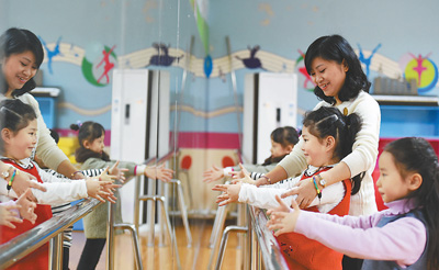 11月29日,在重慶市沙坪壩區(qū)鳳天路社區(qū)“微型少年宮”,社區(qū)志愿者在糾正孩子們的舞蹈姿勢(shì)。