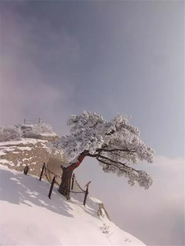 塵世的喧器與愁憂都讓雪裹去了,唯獨給記憶留下了一片雪一樣潔凈的空白,揮不去華山雪中的松樹留在我腦海中的形象。那是千百年來情澆情鑄的精靈。