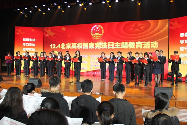 活動(dòng)以共唱國歌憲法誦讀開場(chǎng)。團(tuán)市委副書記袁慧領(lǐng)讀憲法部分章節(jié)。北京市委教育工委副書記狄濤指出,扎實(shí)推進(jìn)以憲法教育為核心的大學(xué)生法治教育,是高教系統(tǒng)的重要任務(wù)。各高校要以高度的政治責(zé)任感和改革創(chuàng)新精神加強(qiáng)和改進(jìn)高校法律基礎(chǔ)課建設(shè),滿足大學(xué)生成長發(fā)展需求;堅(jiān)持不懈開展多姿多彩、積極向上的大學(xué)生校園法治文化活動(dòng),營造濃厚的法治育人氛圍。