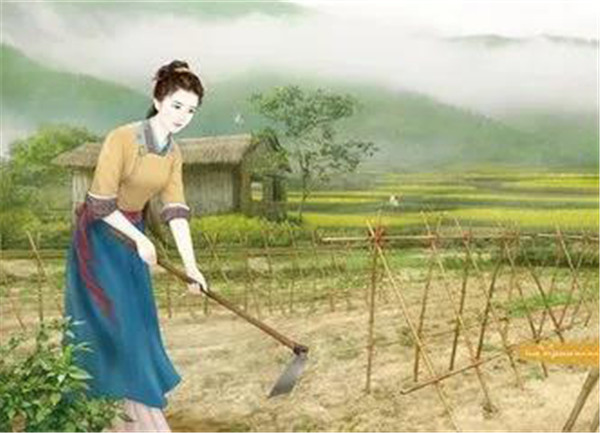 有一天,太陽(yáng)從東方升起,不遠(yuǎn)處的華山峰頂上便披上了一層金色的彩虹。羅敷早早就起來(lái)打扮自己,發(fā)髻微微盤起在側(cè),耳戴明月耳環(huán),身著紅色短襖,淺黃色花紋羅裙,收拾停當(dāng),帶上采桑的工具,高高興興地出門,往峪田里走去。羅敷邊走邊想,王可一定在等著她,商量終身大事呢。