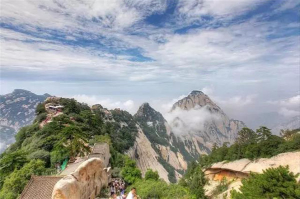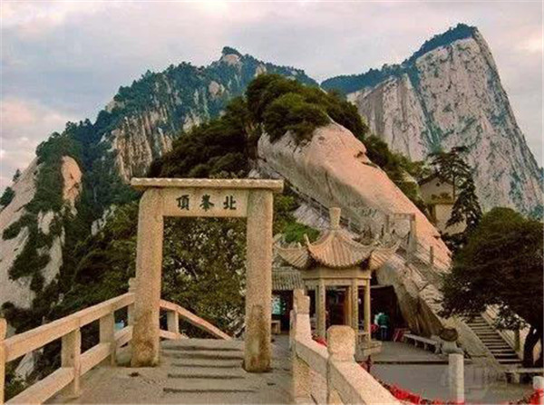 北峰海拔1614米,為華山主峰之一,因位置居北得名。北峰四面懸絕,上冠景云,下通地脈,巍然獨(dú)秀,有若云臺,因此又名云臺峰。唐李白《西岳云臺歌送丹丘子》詩曾寫到:“三峰卻立如欲摧,翠崖丹谷高掌。白帝金精運(yùn)元?dú)?,石作蓮花云作臺。”