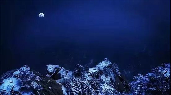 入夜,華燈初上,月亮懸掛華山之上,那是上帝的遺珠,自然的饋贈,人類的禪境。