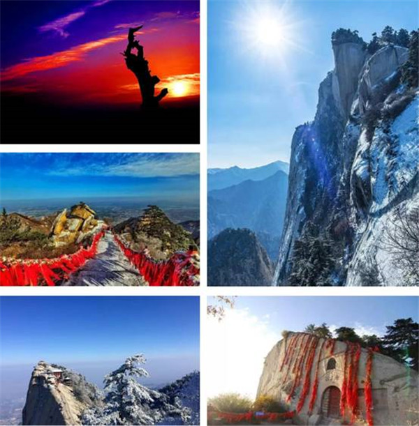 石蓮鋪地,華岳擎天。勢行斧刃,剛插云環(huán)。北臨黃渭,東鎖潼關(guān)。南依秦嶺,西望長安。華山等你來,一道呼吸新鮮空氣,遠離霧霾。