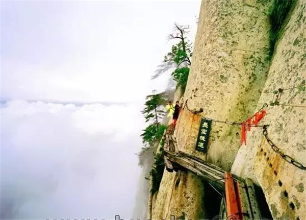 在華山,有一個(gè)全世界五大驚險(xiǎn)旅游景點(diǎn)之一的地方,叫長空棧道。