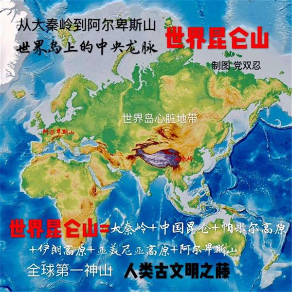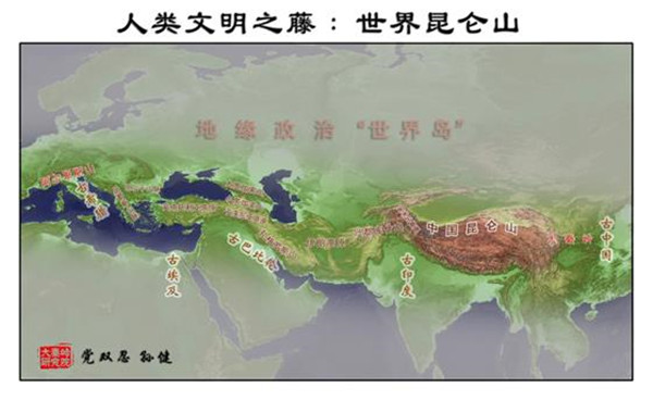 按照中國傳統(tǒng)的龍脈理論,“亞歐大陸的脊梁”也是“世界島”中央龍脈所在。由于人類古文明,包括古華夏、古印度、古波斯、古巴比倫,古希臘,皆源自“亞歐大陸脊梁”,所以也可稱其為“世界昆侖山”。著名的“絲稠之路”,也是從中國大秦嶺到歐洲阿爾卑斯山之路,也可稱之為“世界昆侖山之路”。過去,德國人首先“發(fā)現(xiàn)”了古老的“絲綢之路”。進(jìn)入21世紀(jì),英國人又率先以“絲綢之路”的視角,重新著述了“一部全新的人類史”。今天,中國人以“亞歐大陸的脊梁”為視野,將“世界島”連為一體,著述“一帶一路”,著述“大秦嶺到阿爾卑斯山之路”,著述“世界昆侖山之路”,也算是一個世界“地理新發(fā)現(xiàn)”。