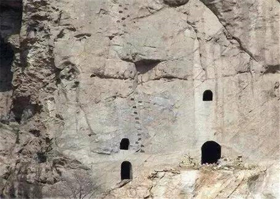 白雀寺北窟位于華陰市五方鄉(xiāng)仙峪村南秦嶺北支華山山脈。該石窟東隔仙峪與華山西峰相望,高出峪道約300米。洞窟開鑿于山體的花崗巖質壁面上,存有洞窟三眼。石窟中的原彩塑已無存,洞頂上刻有的圖案保存較好,專家根據建造特征分析,三眼石窟可能始鑿于唐代。