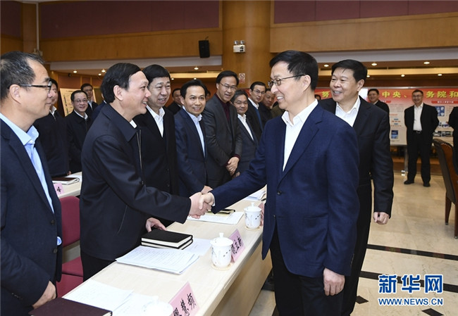 2月18日,中共中央政治局常委、國(guó)務(wù)院副總理韓正到國(guó)家稅務(wù)總局調(diào)研并主持召開(kāi)座談會(huì)。 新華社記者謝環(huán)馳攝