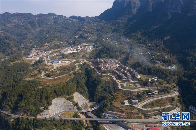 俯瞰南江縣橋亭鎮(zhèn)新居(2018年11月3日無(wú)人機(jī)拍攝)。新華社記者 江宏景 攝