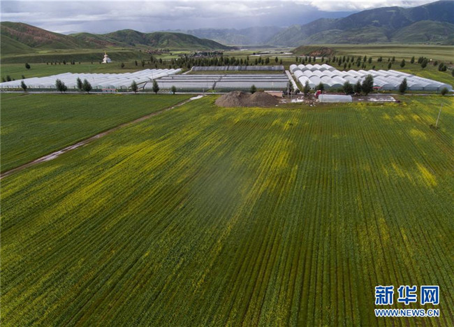 這是理塘縣濯桑鄉(xiāng)濯?,F(xiàn)代農(nóng)業(yè)雙創(chuàng)中心(2018年8月11日無(wú)人機(jī)拍攝)。理塘縣甲洼鎮(zhèn)、濯桑鄉(xiāng)等鄉(xiāng)鎮(zhèn)集中使用產(chǎn)業(yè)扶持資金,跨村集中抱團(tuán)發(fā)展設(shè)施蔬菜大棚,讓貧困人口在園區(qū)獲得穩(wěn)定收益。新華社記者 江宏景 攝