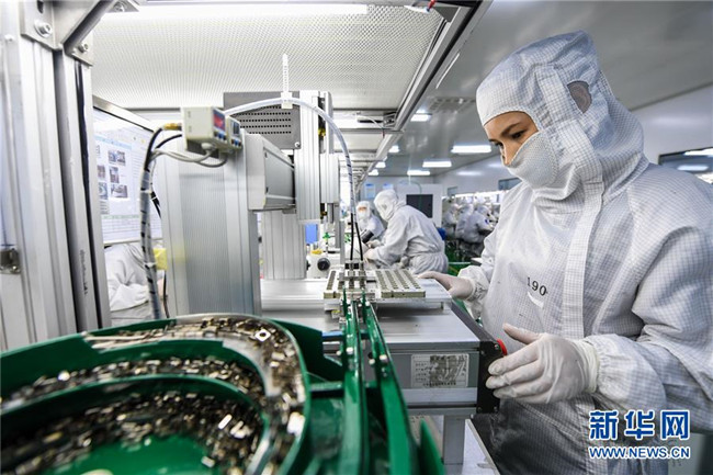 2月23日,在內(nèi)蒙古包頭市江馨微電機(jī)公司的生產(chǎn)線中,工作人員用自動(dòng)擺盤設(shè)備將部件擺放在組裝工具上。 新華社記者 彭源 攝