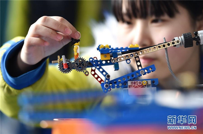 2月28日,在石家莊市藁城區(qū)韓家洼中學(xué),學(xué)生在組裝“機(jī)器人”。新華社發(fā)(張曉峰 攝)