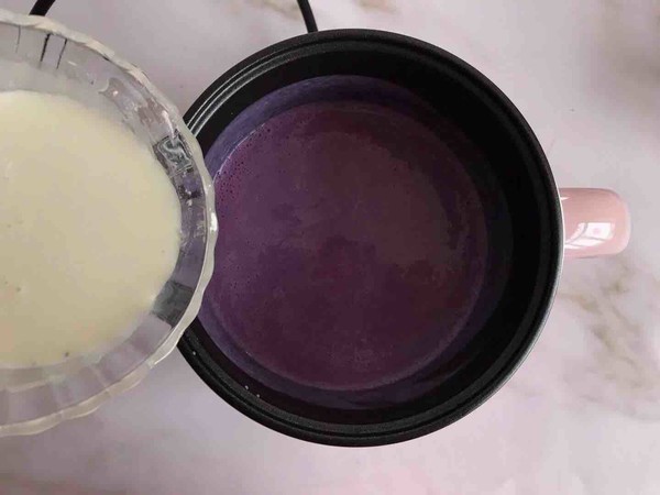 5.倒入攪拌機(jī),攪打成牛奶紫薯糊