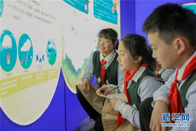 3月22日,學(xué)生在合肥市氣象科普館了解氣象知識(shí)。