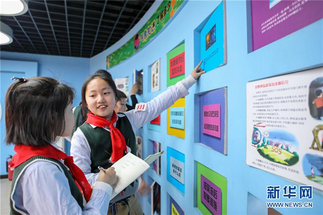 當(dāng)日,安徽省合肥市合作化南路社區(qū)組織第六十七中學(xué)小學(xué)部學(xué)生來(lái)到市氣象科普館,學(xué)習(xí)氣象科普知識(shí),迎接3月23日世界氣象日的到來(lái)。 新華社記者 曹力 攝