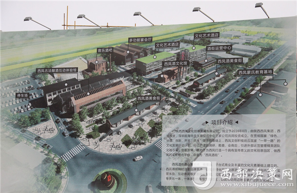 據(jù)了解,該項(xiàng)目總投資1.5億元,占地41823.4平方米,計(jì)劃建筑面積27785平方米。項(xiàng)目規(guī)劃有西鳳美食街、西鳳古法釀酒互動(dòng)體驗(yàn)館、西鳳酒文化主題餐廳、西部文化劇場(chǎng)&西部美術(shù)館、西鳳文化教育基地等主題內(nèi)容。
