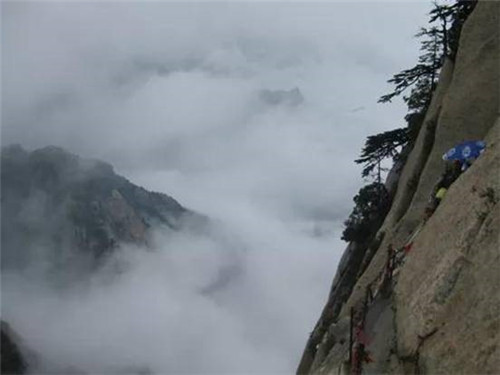 登臨華山之巔,“只有天在上,更無(wú)山與齊。舉頭紅日近,回首白云低。”站在華山之上,風(fēng)云際會(huì),秦川茫茫,藍(lán)天如洗。李白有詩(shī)稱贊“西岳嶸嶸何壯哉,黃河如絲天際來(lái)。”