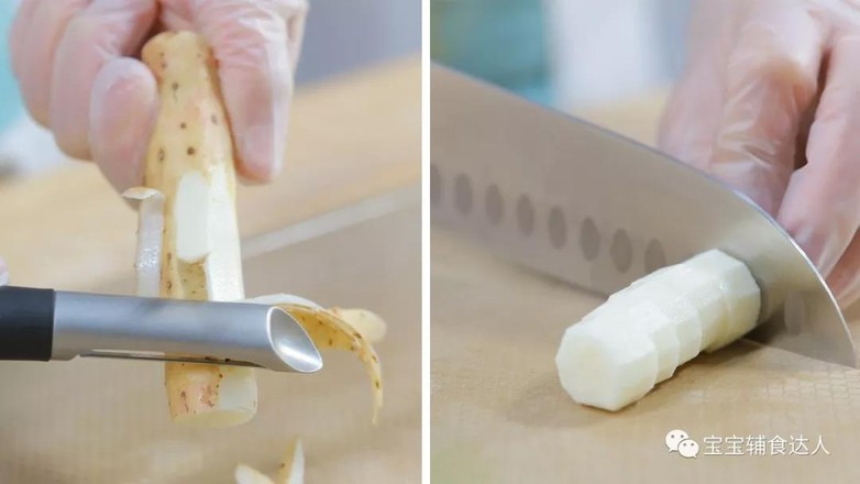 2.山藥去皮,切成小塊。