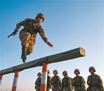 連隊(duì)進(jìn)行400米障礙訓(xùn)練。