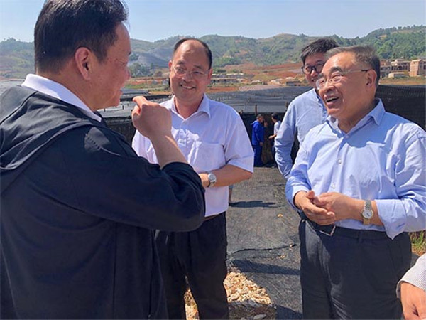 張伯禮院士、錢(qián)忠直教授、陳士林所長(zhǎng)等在苗鄉(xiāng)三七種植資源圃交談 人民網(wǎng)張玫/攝