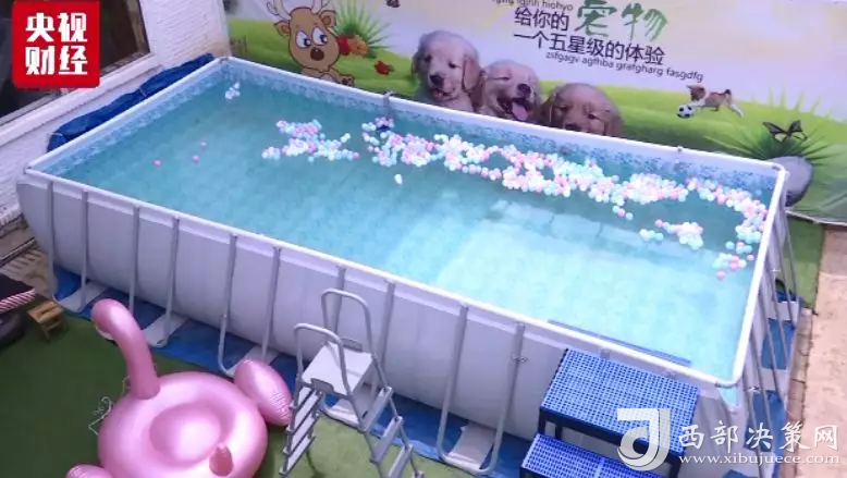 俱樂部的寵物泳池,配備了專門的救生員,寵物救生衣,以及昂貴的池水凈化器,游一次需要80元。