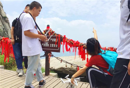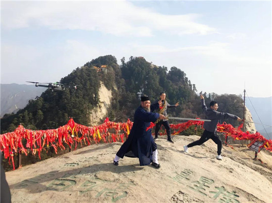 《百家講壇》魏新學(xué)者、《奇葩說第五季》清華名嘴楊奇函及中國(guó)道教協(xié)會(huì)車道長(zhǎng)在西峰頂拍攝《華山論劍》文化旅游紀(jì)念片