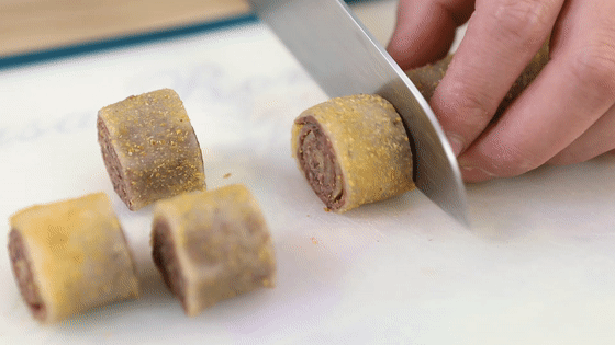 20.將黃豆粉用篩網(wǎng)均勻的撒在小卷上,大功告成啦,給家人露一手吧