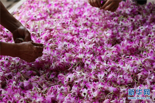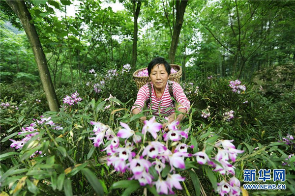 近日,貴州省赤水市的金釵石斛花陸續(xù)進(jìn)入盛花期,當(dāng)?shù)剞r(nóng)民忙著采摘鮮花,供應(yīng)各地市場。金釵石斛是一種名貴中藥材,有“仙草”之稱。近年來,赤水市多個(gè)鄉(xiāng)鎮(zhèn)積極推進(jìn)農(nóng)業(yè)與鄉(xiāng)村旅游等產(chǎn)業(yè)融合,采取“合作社+支部+農(nóng)戶”模式,鼓勵(lì)農(nóng)民種植金釵石斛,助力脫貧攻堅(jiān)和鄉(xiāng)村振興。新華社發(fā)(王長育 攝)