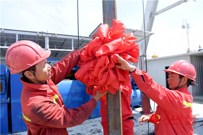 5月14日,準(zhǔn)東鉆井公司90001鉆井隊(duì)技術(shù)員正在檢查鉆頭。當(dāng)天,由中國(guó)石油西部鉆探準(zhǔn)東鉆井公司承鉆的集團(tuán)公司重點(diǎn)風(fēng)險(xiǎn)井呼探1井,在新疆呼圖壁縣境內(nèi)鳴笛開(kāi)鉆,標(biāo)志著新疆準(zhǔn)噶爾盆地南緣東段深層勘探工作正式拉開(kāi)序幕。