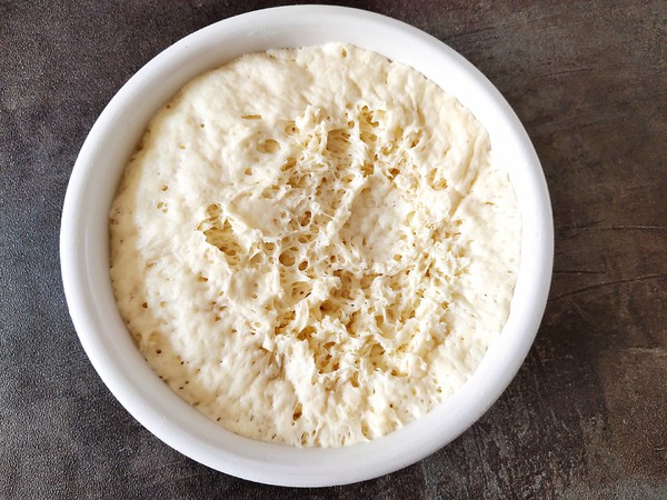 4.放溫暖處餳發(fā)到蜂窩狀,原來體積兩倍大。