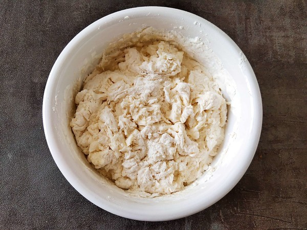 2.面粉中,邊加酵母水邊攪拌成面穗狀。