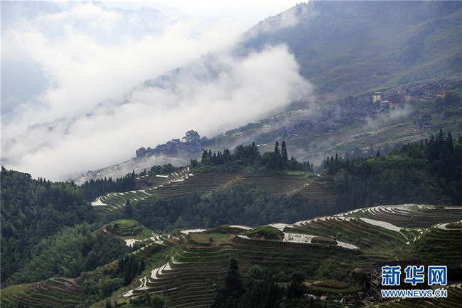 雨后的廣西龍勝各族自治縣龍脊梯田云霧升騰,村寨、梯田在云海中若隱若現(xiàn),美如仙境。 新華社發(fā)(劉滿倉(cāng) 攝)
