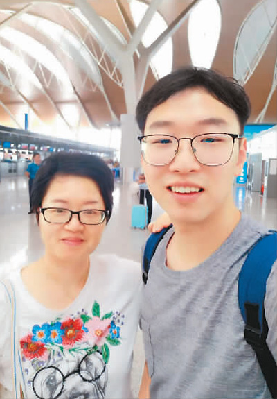2018年9月底,丁申昊(右)去往德國之前與母親在浦東機場的合影。 |