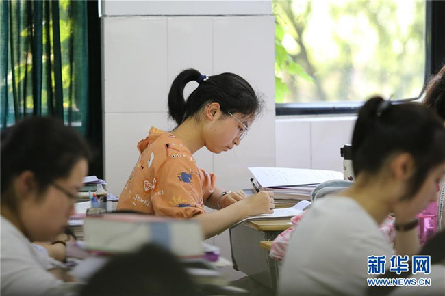 6月4日,在浙江省衢州二中,高三學(xué)生在教室復(fù)習(xí)備考。新華社發(fā)(劉惠震攝)