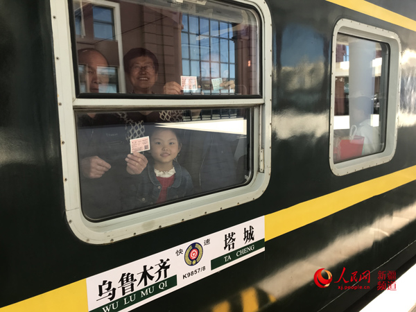 首趟遼寧援疆旅游專列抵達塔城市,送來了克塔鐵路第一批旅客。文博 攝