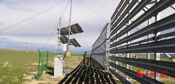 克塔鐵路線上設(shè)置的風(fēng)吹雪監(jiān)控設(shè)備。中國鐵路設(shè)計集團有限公司克塔鐵路項目部供圖