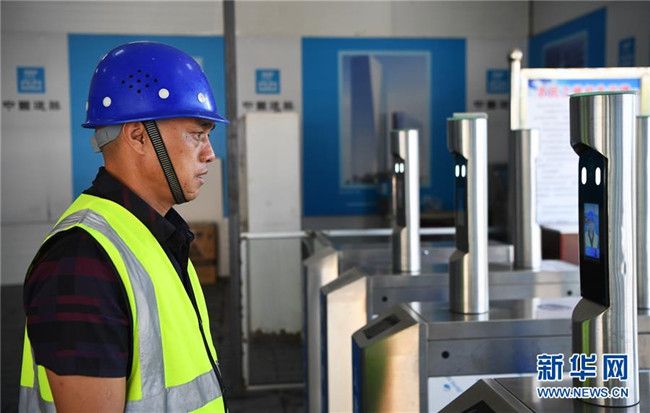 6月5日,重慶化龍橋超高層項(xiàng)目工人通過(guò)人臉識(shí)別系統(tǒng)離開(kāi)工地。 新華社記者 王全超 攝