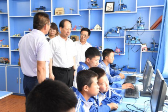 石泰峰十分關(guān)心農(nóng)村學(xué)校運(yùn)用“互聯(lián)網(wǎng)+”破解師資力量和優(yōu)質(zhì)教育資源短缺問(wèn)題。在西夏區(qū)鎮(zhèn)北堡鎮(zhèn)華西中學(xué)和賀蘭縣洪廣鎮(zhèn)金山小學(xué),石泰峰走進(jìn)科普活動(dòng)室、錄播室和教師辦公室,了解視頻遠(yuǎn)程教學(xué)和在線互動(dòng)課堂開展情況。他說(shuō),“互聯(lián)網(wǎng)+教育”是促進(jìn)教育公平的有效手段,要通過(guò)互聯(lián)網(wǎng)技術(shù),一方面把區(qū)內(nèi)優(yōu)質(zhì)教育資源輸送到偏遠(yuǎn)地區(qū)、農(nóng)村學(xué)校,一方面引進(jìn)發(fā)達(dá)地區(qū)先進(jìn)教育理念、教學(xué)技術(shù)、數(shù)字資源為我所用,提升教育教學(xué)水平。