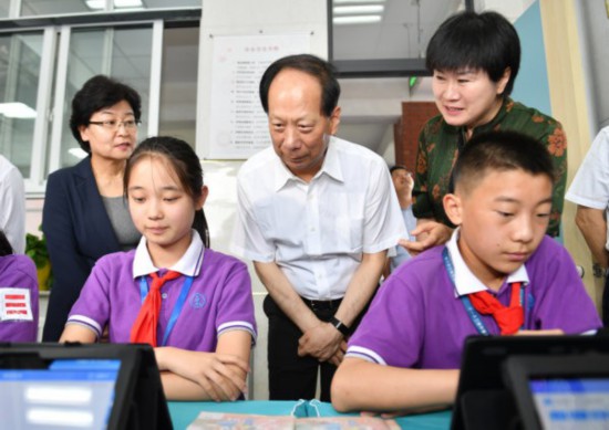 6月10日,石泰峰來(lái)到銀川市二十一小學(xué)本部,調(diào)研“互聯(lián)網(wǎng)+”創(chuàng)新素養(yǎng)教育開展情況。