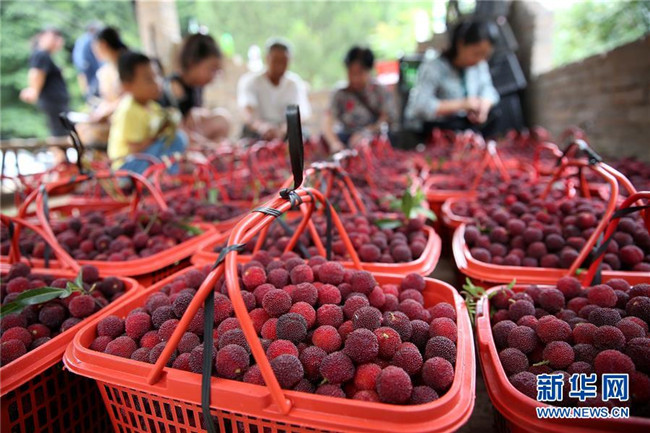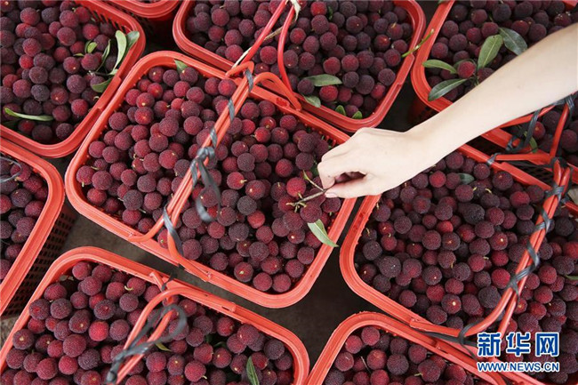 6月15日,在丹寨縣揚武鎮(zhèn)老冬村楊梅種植園,果農(nóng)在整理準備出售的楊梅。新華社發(fā)(黃曉海 攝)
