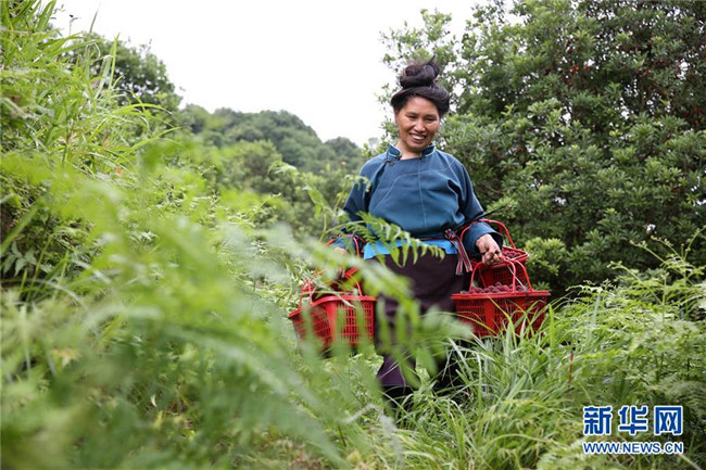 6月15日,在丹寨縣揚武鎮(zhèn)老冬村楊梅種植園,果農(nóng)在采摘楊梅。新華社發(fā)(黃曉海 攝)