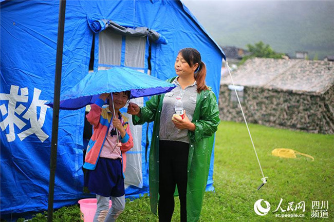 今日,震后長寧雙河鎮(zhèn)中學(xué)操場安置點的第二個清晨,天下著淅淅瀝瀝的小雨,群眾開始排隊有序領(lǐng)取物資,各項生活有保障。(朱虹)