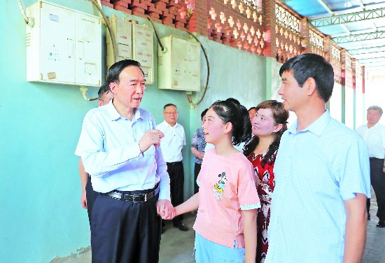 6月18日,新疆維吾爾自治區(qū)黨委書(shū)記陳全國(guó)到吐魯番市調(diào)研。這是陳全國(guó)在吐魯番市高昌區(qū)亞爾鎮(zhèn)英買(mǎi)里村,走訪慰問(wèn)阿里木·吐?tīng)栠d一家,并仔細(xì)詢(xún)問(wèn)生產(chǎn)生活、子女就學(xué)等情況。崔志堅(jiān) 攝