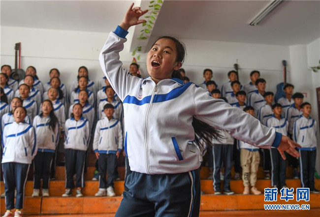 鹽井中學(xué)的學(xué)生們在上美術(shù)課(6月5日攝)。年輕的藏族女教師坐在鋼琴前,手指靈動地彈奏樂曲,兩名學(xué)生拉起弦子伴奏,三十多名學(xué)生站成四排,齊聲合唱。學(xué)?;@球場上數(shù)名身材高大的學(xué)生,正在體育老師的組織下進(jìn)行激烈的分組對抗,不一會兒,學(xué)生們個(gè)個(gè)汗流浹背。綜合樓三樓的化學(xué)實(shí)驗(yàn)室內(nèi),身穿白色大褂的學(xué)生,分成若干小組,正在做簡單的化學(xué)實(shí)驗(yàn)。這一幕幕,同時(shí)出現(xiàn)在西藏昌都市芒康縣鹽井中學(xué)。新華社記者晉美多吉攝