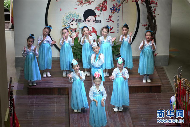 7月4日,德清縣乾元鎮(zhèn)第一幼兒園小朋友們在唱垃圾分類兒歌。新華社記者 尹棟遜 攝
