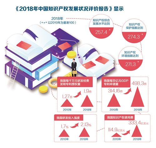 《2018年中國知識產(chǎn)權(quán)發(fā)展?fàn)顩r評價報告》顯示,2018年我國知識產(chǎn)權(quán)綜合發(fā)展指數(shù)顯著提升,知識產(chǎn)權(quán)運(yùn)用進(jìn)步尤為顯著,社會公眾及創(chuàng)新主體的知識產(chǎn)權(quán)意識進(jìn)一步提高。這得益于我國采取建機(jī)制、建平臺、促產(chǎn)業(yè)等多項(xiàng)措施,打通知識產(chǎn)權(quán)創(chuàng)造、運(yùn)用、保護(hù)和管理全鏈條。