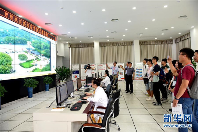 7月9日,大學(xué)生走進(jìn)安徽淮南市高新區(qū)中國(guó)鐵塔淮南分公司,了解智慧城市管理支撐系統(tǒng)建設(shè)情況。新華社發(fā)(陳彬攝)