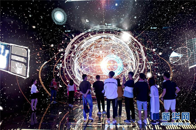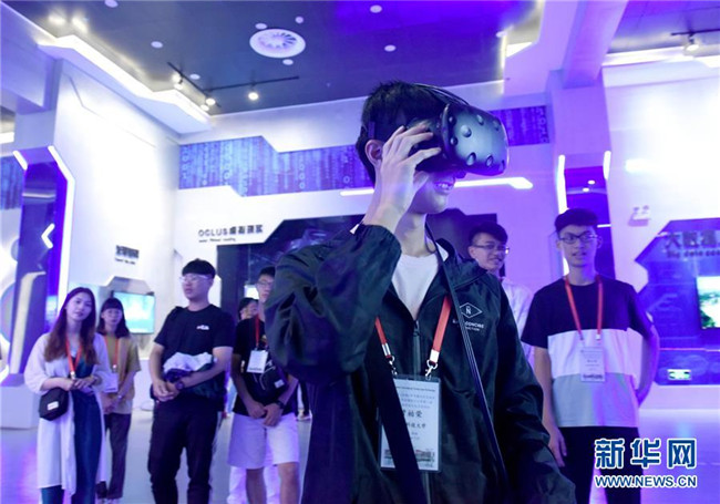 7月9日,大學(xué)生走進(jìn)安徽淮南大數(shù)據(jù)展示中心,通過(guò)虛擬現(xiàn)實(shí)設(shè)備,體驗(yàn)現(xiàn)代化井下煤礦開采場(chǎng)景。新華社發(fā)(陳彬攝)